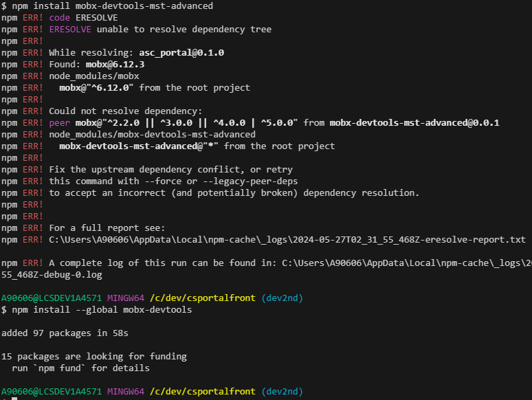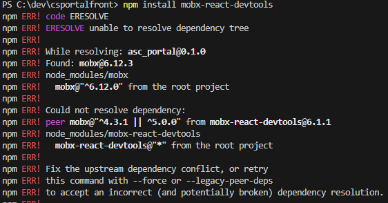 resolve 'mobx-devtools-mst' in 'C:\dev\csportalfront\src\store'
